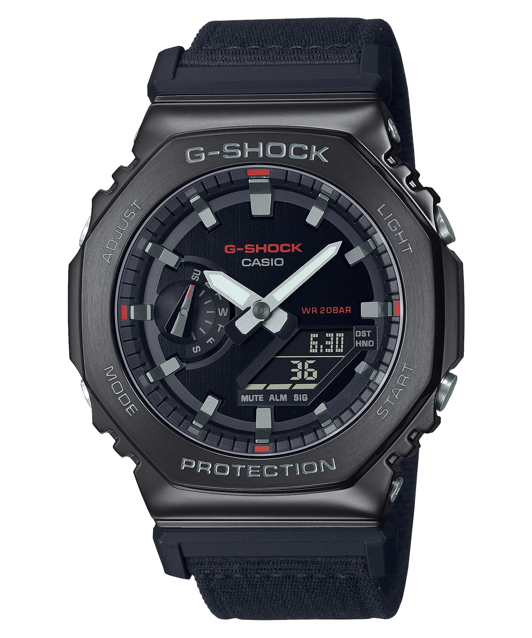 These innovative watches take the iconic octagonal form and metal-clad design of the GM-2100 line and pair it with a casual fabric band in an utilitarian color that goes with any outfit.