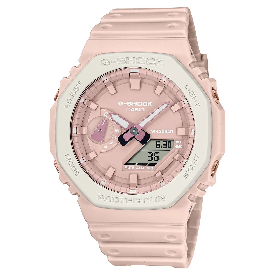 Explore the quiet pleasures of a garden in G-SHOCK pink. Choose the iconic 5600 or the octagonal 2100 in two different designs — all in charming combinations of pink hues for a sweet and stylish look.